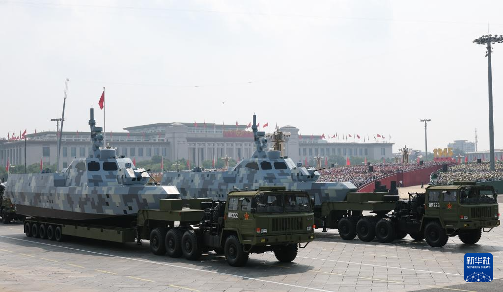 9月3日,紀(jì)念中國人民抗日戰(zhàn)爭暨世界反法西斯戰(zhàn)爭勝利80周年大會(huì)在北京隆重舉行。這是艦載防空武器方隊(duì)接受檢閱。