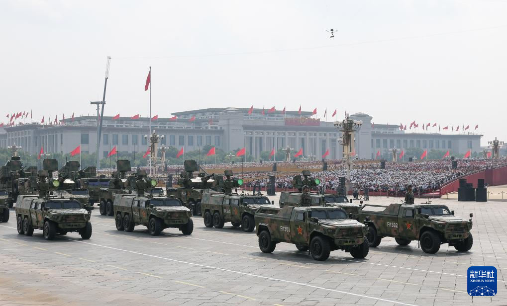 9月3日,紀(jì)念中國人民抗日戰(zhàn)爭暨世界反法西斯戰(zhàn)爭勝利80周年大會(huì)在北京隆重舉行。這是反無人機(jī)方隊(duì)接受檢閱。