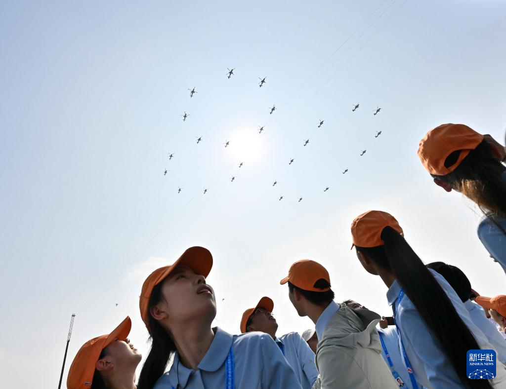 9月3日,紀(jì)念中國人民抗日戰(zhàn)爭暨世界反法西斯戰(zhàn)爭勝利80周年大會(huì)在北京隆重舉行。這是觀眾拍攝教練機(jī)梯隊(duì)接受檢閱。