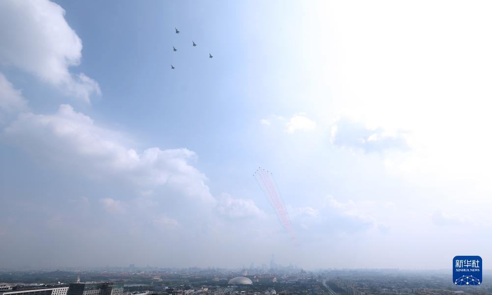9月3日,紀念中國人民抗日戰(zhàn)爭暨世界反法西斯戰(zhàn)爭勝利80周年大會在北京隆重舉行。這是空中梯隊接受檢閱。