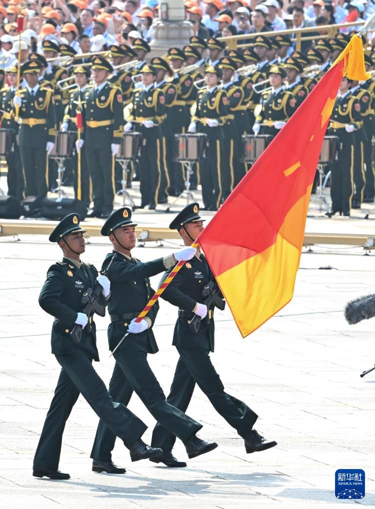 9月3日,紀念中國人民抗日戰(zhàn)爭暨世界反法西斯戰(zhàn)爭勝利80周年大會在北京隆重舉行。這是戰(zhàn)旗方隊接受檢閱。