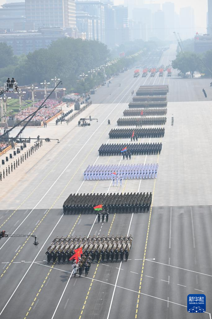 9月3日,紀念中國人民抗日戰(zhàn)爭暨世界反法西斯戰(zhàn)爭勝利80周年大會在北京隆重舉行。這是徒步方隊通過天安門廣場。