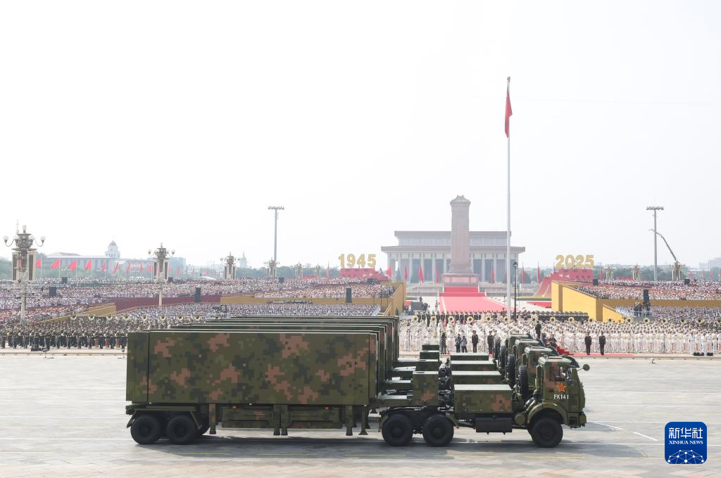 9月3日,紀念中國人民抗日戰(zhàn)爭暨世界反法西斯戰(zhàn)爭勝利80周年大會在北京隆重舉行。這是高超聲速導(dǎo)彈方隊接受檢閱。