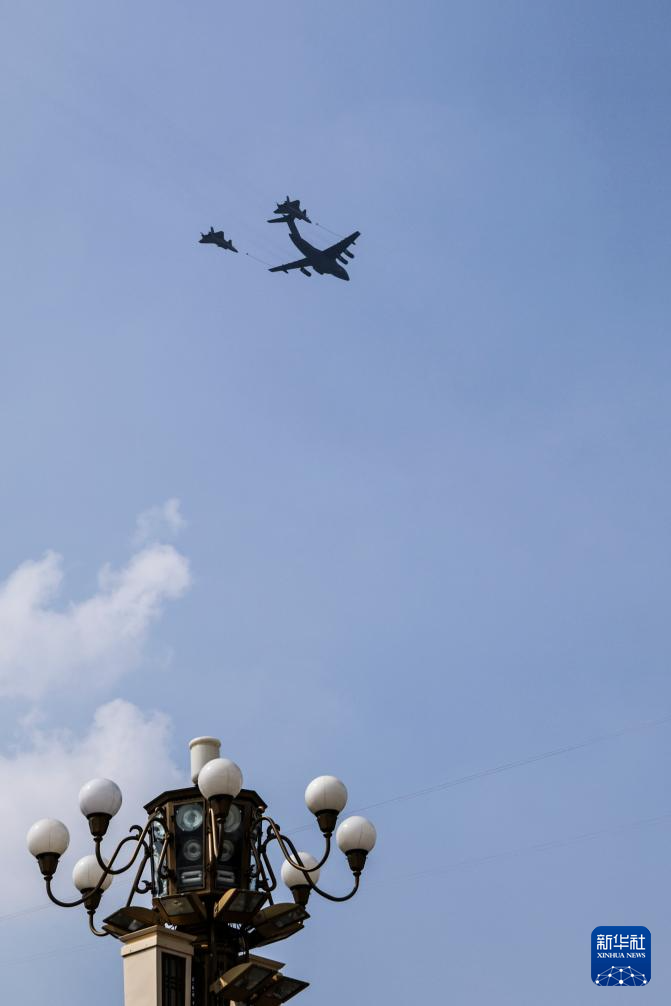 9月3日,紀念中國人民抗日戰(zhàn)爭暨世界反法西斯戰(zhàn)爭勝利80周年大會在北京隆重舉行。這是加受油機梯隊接受檢閱。