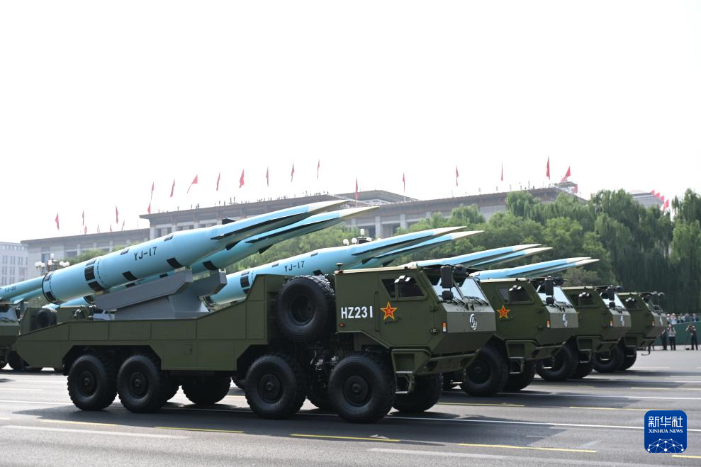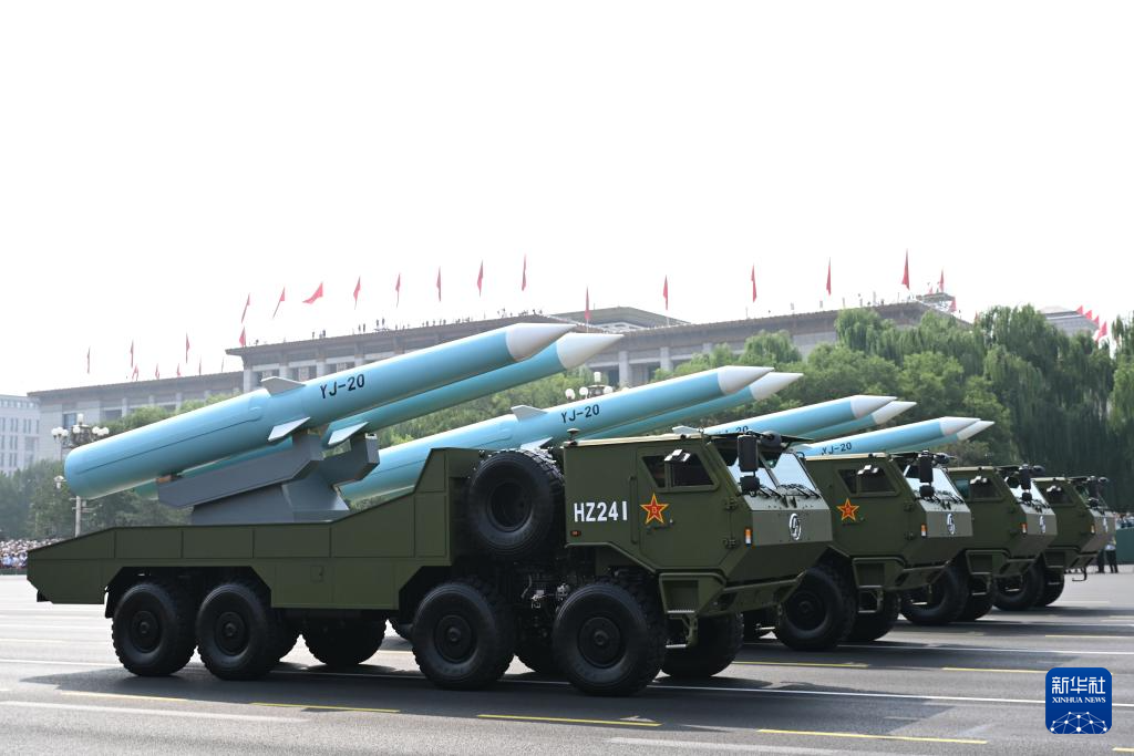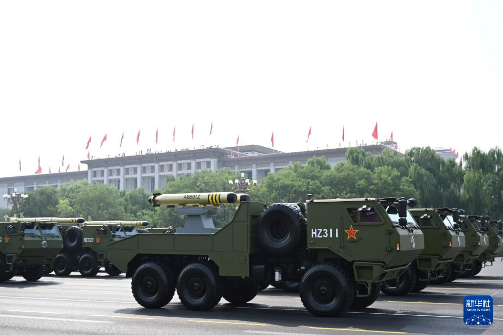 9月3日,紀(jì)念中國人民抗日戰(zhàn)爭暨世界反法西斯戰(zhàn)爭勝利80周年大會(huì)在北京隆重舉行。這是反艦導(dǎo)彈方隊(duì)接受檢閱。