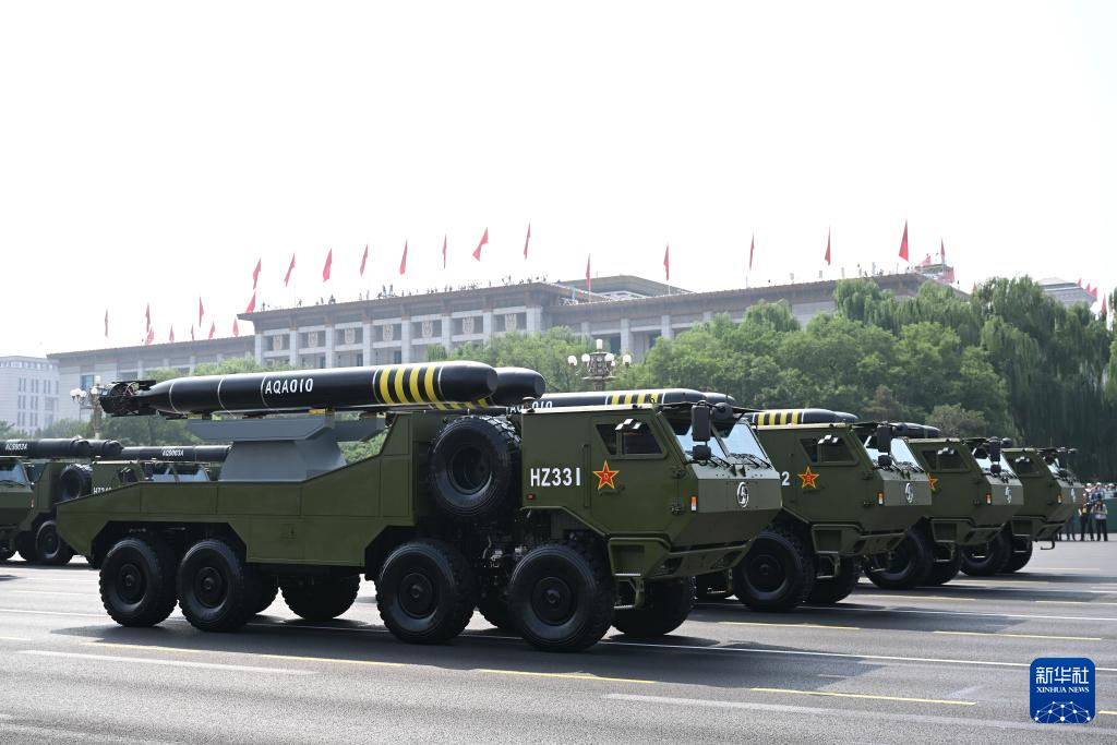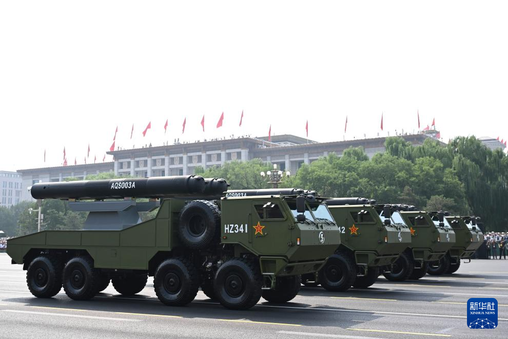 9月3日,紀(jì)念中國人民抗日戰(zhàn)爭暨世界反法西斯戰(zhàn)爭勝利80周年大會(huì)在北京隆重舉行。這是水下兵器方隊(duì)接受檢閱。
