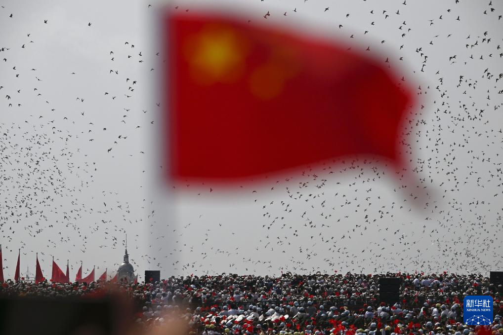 9月3日,紀(jì)念中國人民抗日戰(zhàn)爭暨世界反法西斯戰(zhàn)爭勝利80周年大會(huì)在北京隆重舉行。這是紀(jì)念大會(huì)現(xiàn)場放飛和平鴿。