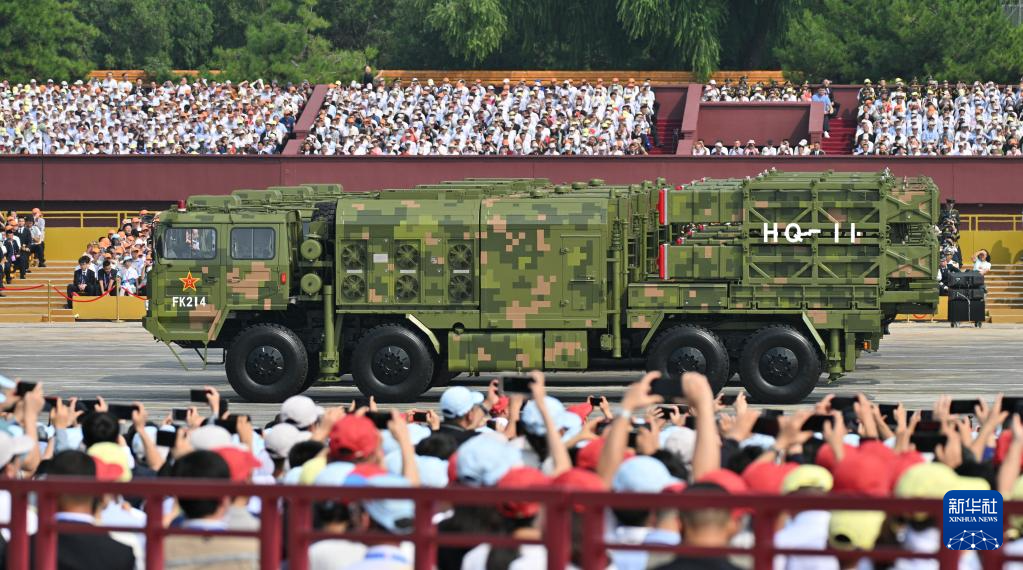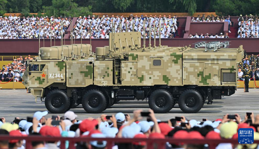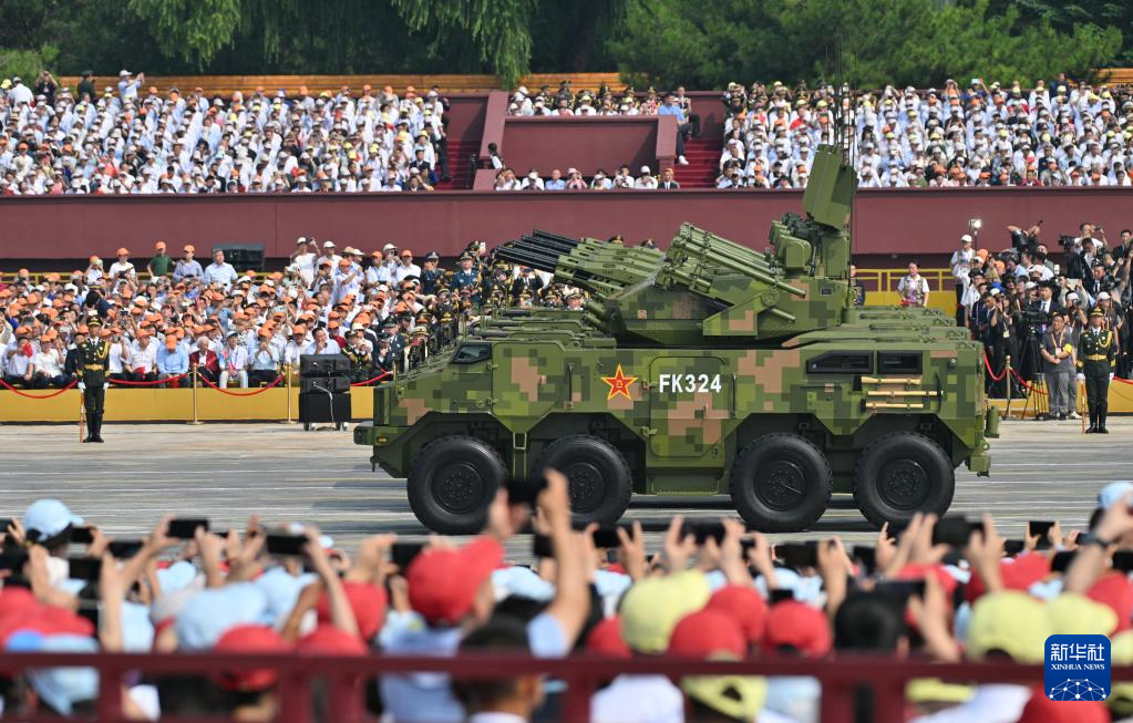 9月3日,紀(jì)念中國人民抗日戰(zhàn)爭暨世界反法西斯戰(zhàn)爭勝利80周年大會(huì)在北京隆重舉行。這是對空抗擊方隊(duì)通過天安門廣場。