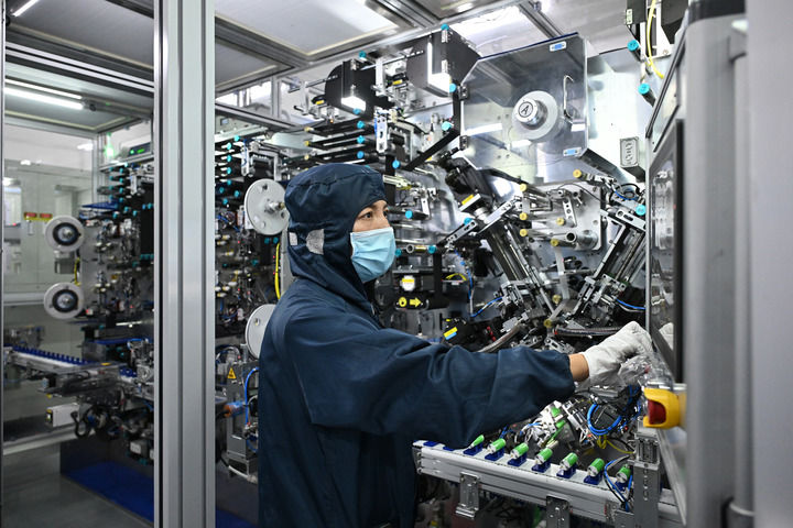 在山西陽泉,華陽新材料科技集團(tuán)華鈉芯能科技有限責(zé)任公司的工作人員在操控設(shè)備(2024年7月31日攝)。新華社記者 李鑫 攝