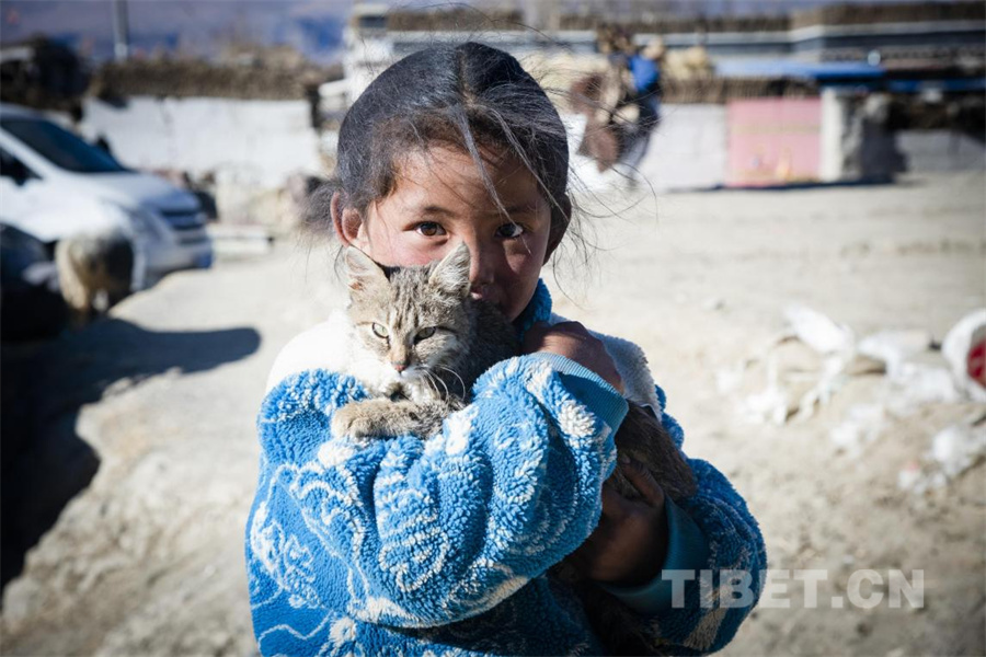 圖為在定日縣受災(zāi)群眾安置點內(nèi),一名小女孩在冬日里抱起一只小貓,給予小貓溫暖,也傳給我們力量。(攝于2025年1月10日) 攝影:趙振宇