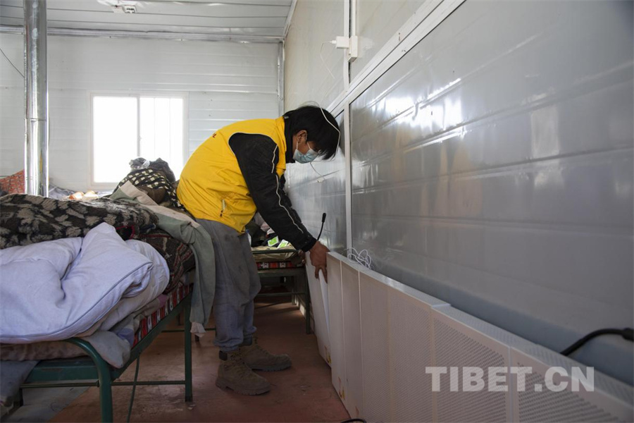 圖為地震發(fā)生第五日,在定日縣長所鄉(xiāng)古榮村受災(zāi)群眾安置點內(nèi),工作人員正在安裝電暖器 (攝于2025年1月11日) 攝影:趙振宇