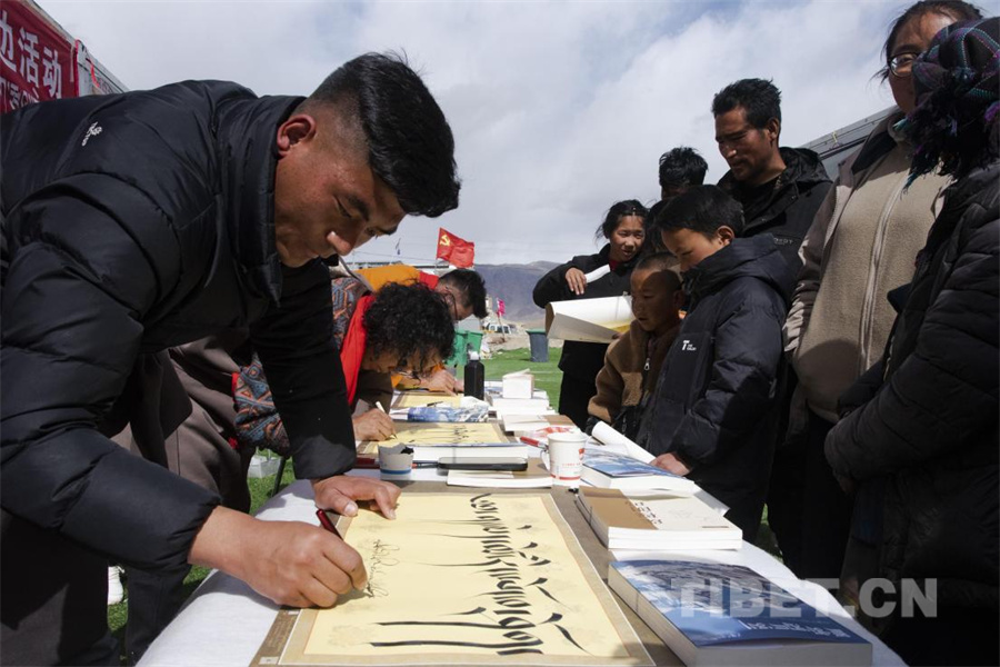 圖為藏歷新年之際,定結(jié)縣邀請日喀則市文聯(lián)書法家為受災(zāi)群眾送上藏歷新年祝福(攝于2025年3月1日)攝影:趙振宇