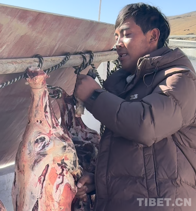 在定日縣長(zhǎng)所鄉(xiāng)古榮村,村民羅布正在新房前晾曬風(fēng)干羊肉。“這將是我們?cè)谛录疫^的第一個(gè)年,”他說,“希望一年比一年好。”風(fēng)干羊肉的香氣在冬日的空氣中飄散,炊煙從嶄新的屋頂升起,處處洋溢著即將到來的日喀則農(nóng)事新年的味道。