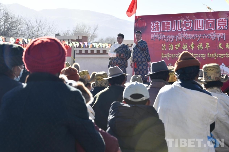 中國西藏網(wǎng)訊 1月7日,在日喀則農(nóng)事新年即將來臨之際,西藏日喀則市拉孜縣錫欽鄉(xiāng)以一場別開生面的“村晚”為喜遷新居的受災(zāi)群眾迎接第一個新年。通過群眾自編自演的文藝節(jié)目、互動式法治宣講、政策解讀等生動形式,把法律知識、文明新風(fēng)融入節(jié)日活動。不僅豐富了農(nóng)村精神文化生活,傳承了優(yōu)秀傳統(tǒng)文化,更以群眾喜聞樂見的方式傳播法治理念,引導(dǎo)群眾自覺尊法學(xué)法守法用法,展現(xiàn)出災(zāi)后重建家園、共創(chuàng)美好生活的信心與力量。(中國西藏網(wǎng) 記者/趙振宇 旦曲)
