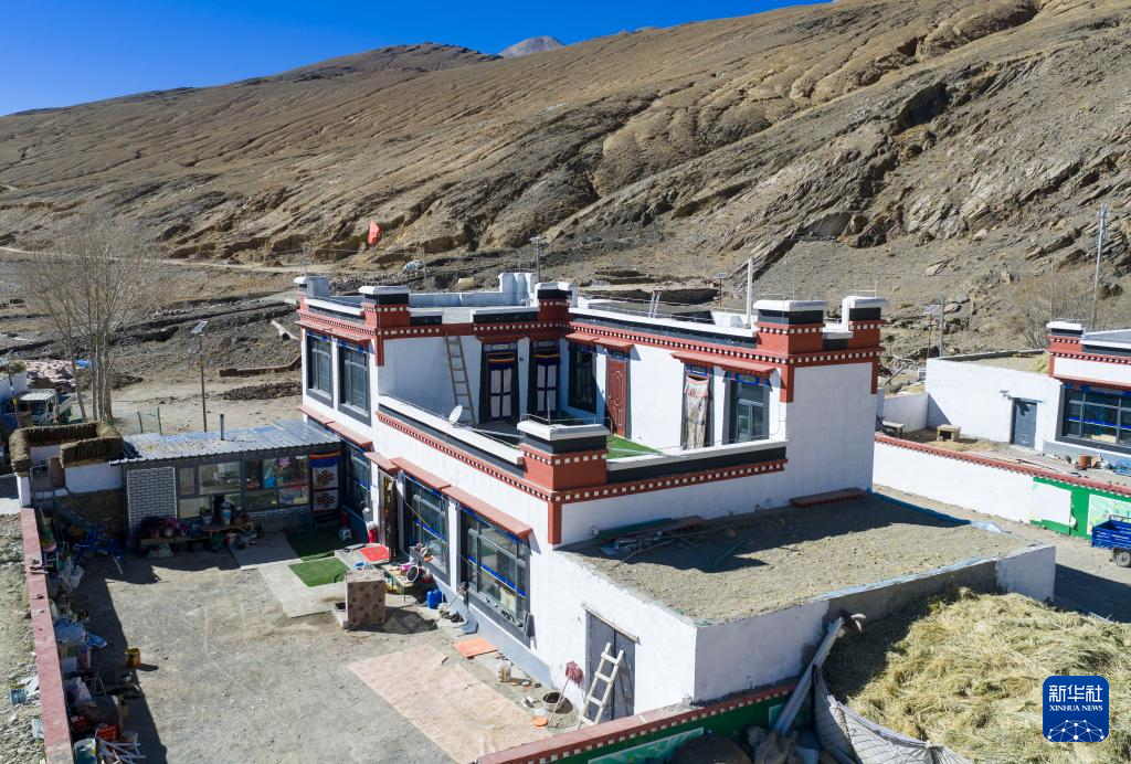 2月16日拍攝的長所鄉(xiāng)古榮村村民桑杰家的新居(無人機照片)。新華社記者 旦增尼瑪曲珠 攝
