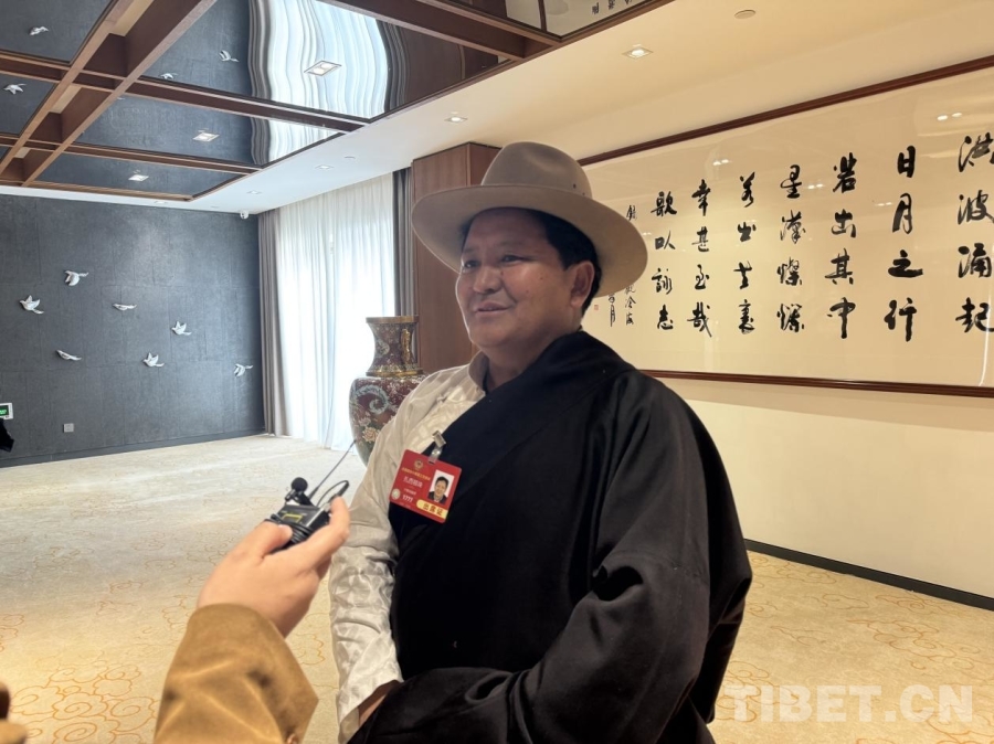 圖為兩會期間,扎西頓珠接受中國西藏網(wǎng)記者采訪