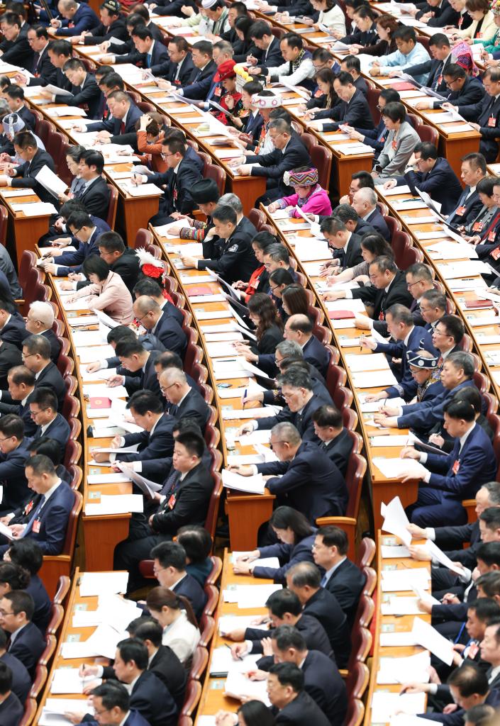 3月8日,十四屆全國人大三次會議在北京人民大會堂舉行第二次全體會議。新華社記者 盧燁 攝