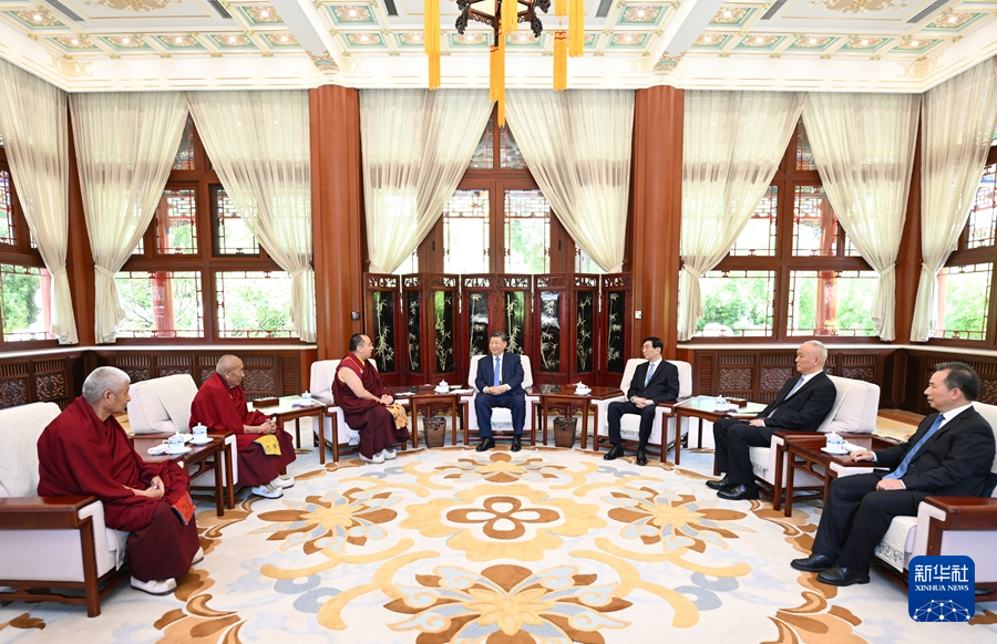 6月6日,中共中央總書記、國家主席、中央軍委主席習(xí)近平在北京中南海接受班禪額爾德尼·確吉杰布拜見。新華社記者 燕雁 攝