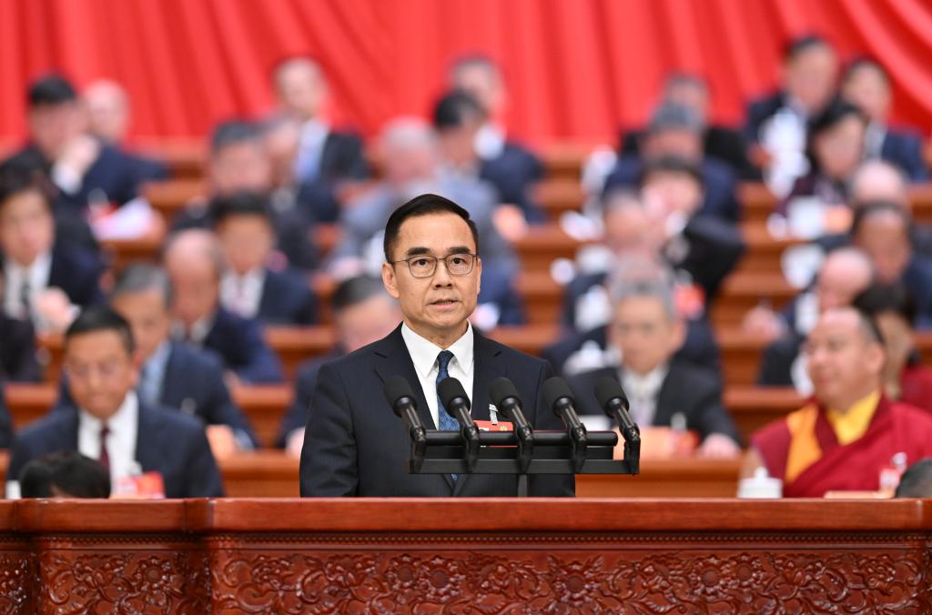 3月8日,全國政協(xié)十四屆四次會(huì)議在北京人民大會(huì)堂舉行第三次全體會(huì)議。這是施榮懷委員作題為《深入推動(dòng)香港更好融入和服務(wù)國家發(fā)展大局》的發(fā)言。新華社記者 岳月偉 攝