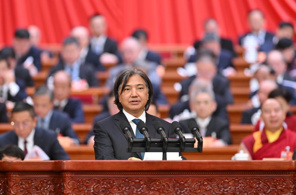 3月8日,全國政協(xié)十四屆四次會(huì)議在北京人民大會(huì)堂舉行第三次全體會(huì)議。這是何潤生委員作題為《發(fā)揮背靠祖國聯(lián)通世界優(yōu)勢(shì) 打造國際高端人才集聚高地》的發(fā)言。新華社記者 岳月偉 攝