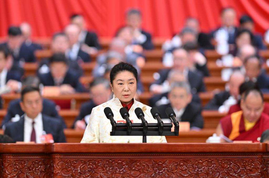 3月8日,全國政協(xié)十四屆四次會(huì)議在北京人民大會(huì)堂舉行第三次全體會(huì)議。這是張恩迪委員代表致公黨中央作題為《扎實(shí)推進(jìn)制度型開放 營造一流營商環(huán)境 以開放促改革促發(fā)展》的發(fā)言。新華社記者 岳月偉 攝