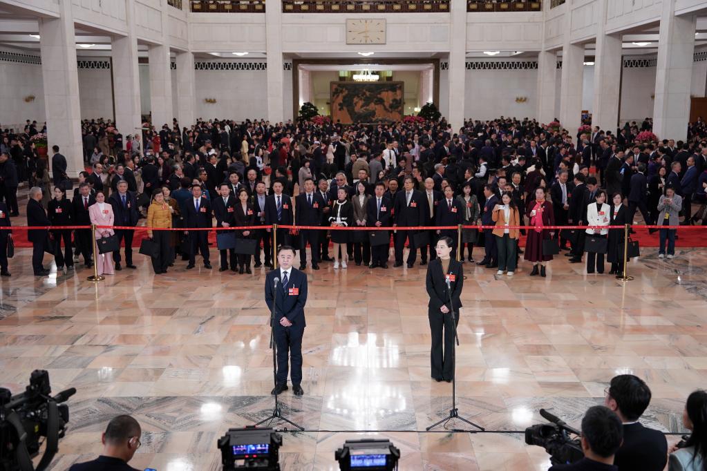 3月9日,第十四屆全國人民代表大會第四次會議第二場“代表通道”集中采訪活動在北京人民大會堂舉行。新華社記者 傅天 攝