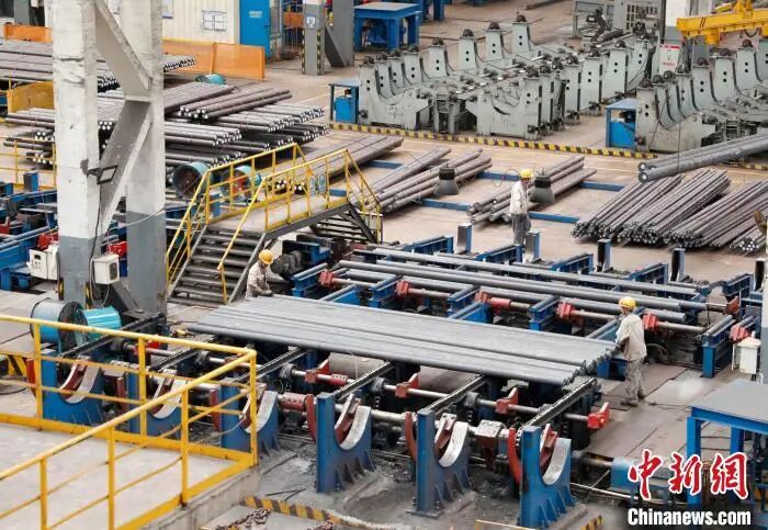 河南濟(jì)源外貿(mào)企業(yè)濟(jì)源鋼鐵集團(tuán)生產(chǎn)車間工人正在搬運(yùn)鋼制品。 闞力 攝