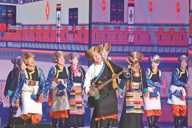 在浪卡子縣皖江劇院,紀念西藏民主改革67周年暨慶祝山南市撤地設(shè)市10周年文藝晚會正在上演。開場舞《吉祥彩秀》的演員們身著盛裝,揮舞著絢麗靈動的彩袖,瞬間點燃全場。紅歌聯(lián)唱《雪域歡歌頌黨恩》將經(jīng)典紅色旋律與藏語原創(chuàng)歌曲巧妙結(jié)合,帶領(lǐng)觀眾重溫那段波瀾壯闊的歷史。小品《在崗新春答卷》取材于基層干部的真實事跡,詼諧幽默的表演背后,是扎根一線、為民服務(wù)的責任擔當。