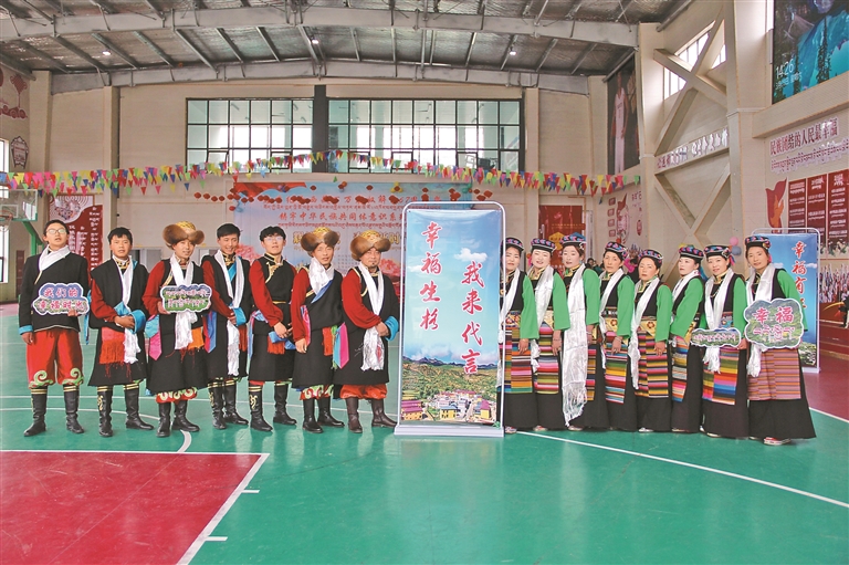 洛扎縣生格鄉(xiāng)演出人員在文藝活動現(xiàn)場合影留念。